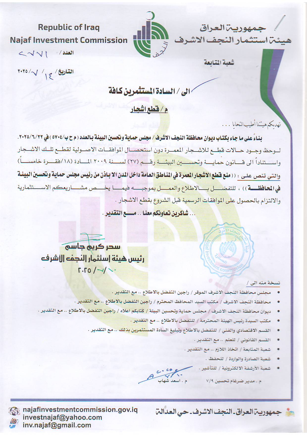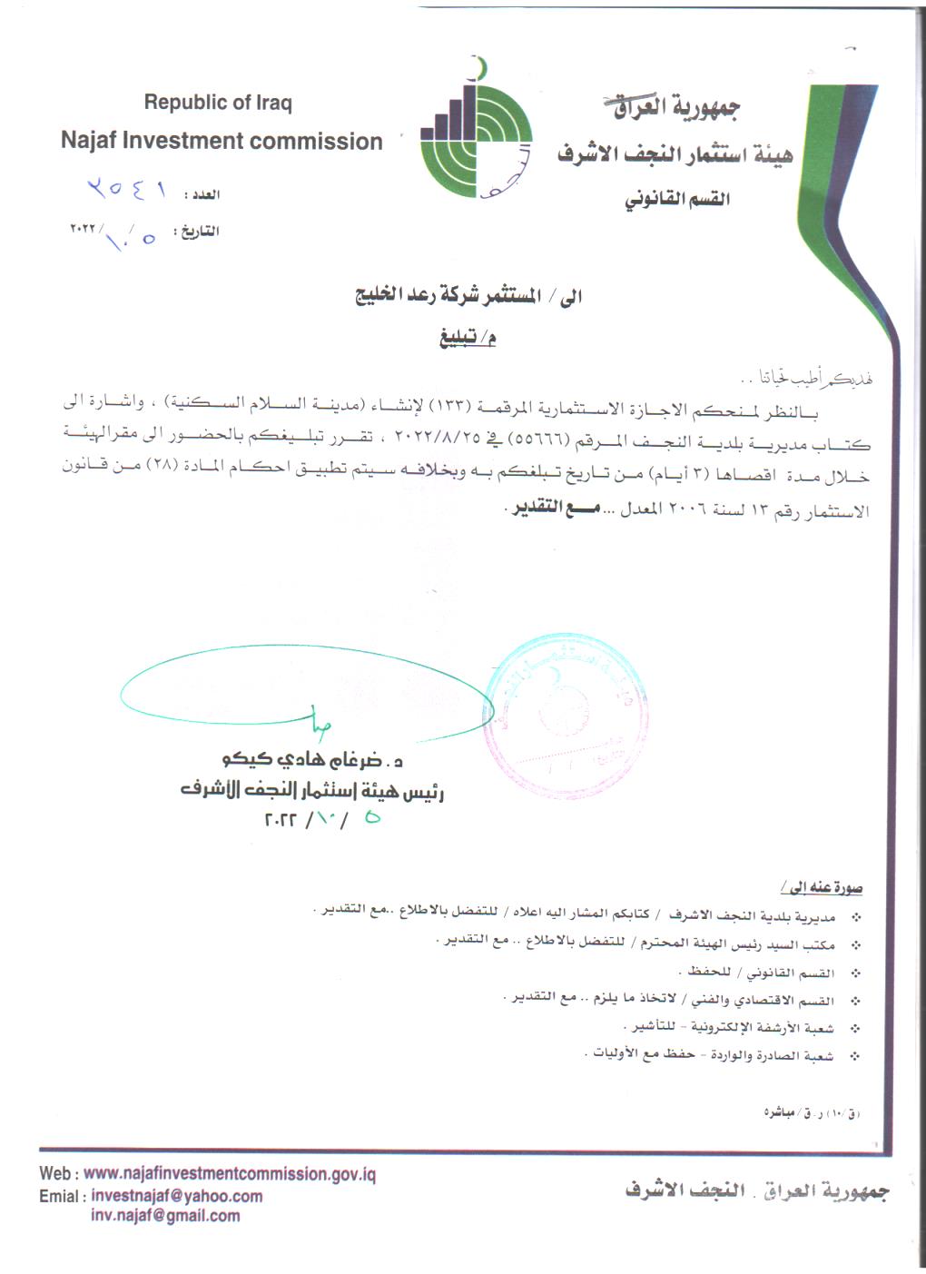 تعلن هيئة استثمار النجف عن توفر الفرصة الاستثمارية وحسب كتابنا العدد 4486 وكما هو مرفق طيا