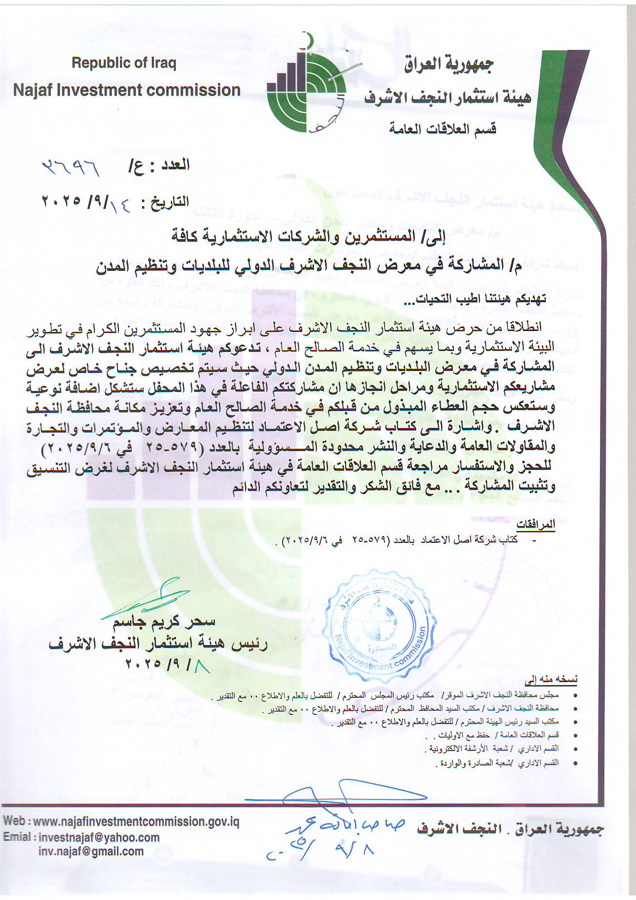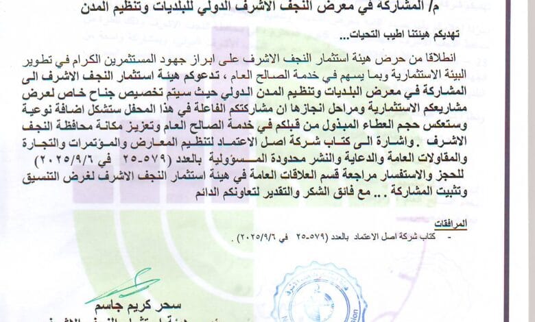 المشاركة في معرض النجف الاشرف الدولي للبلديات وتنظيم المدن
