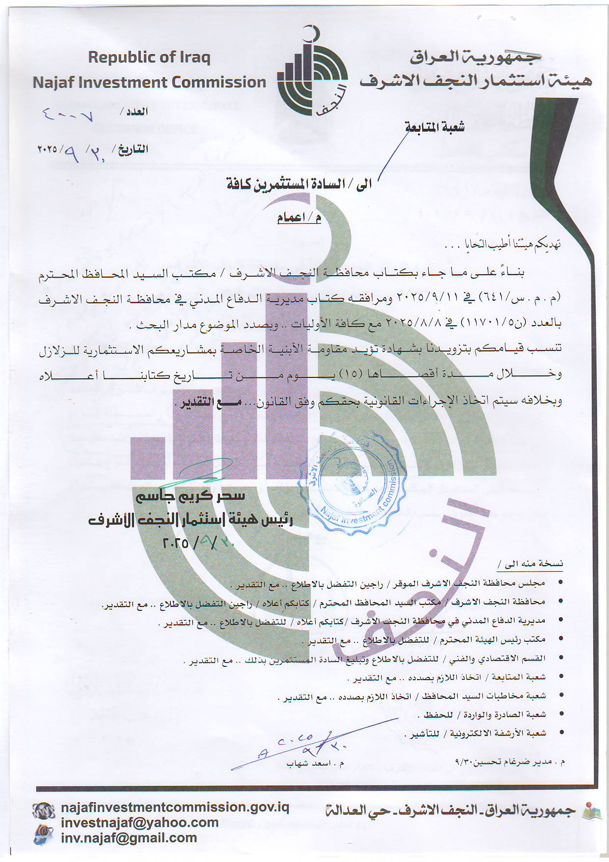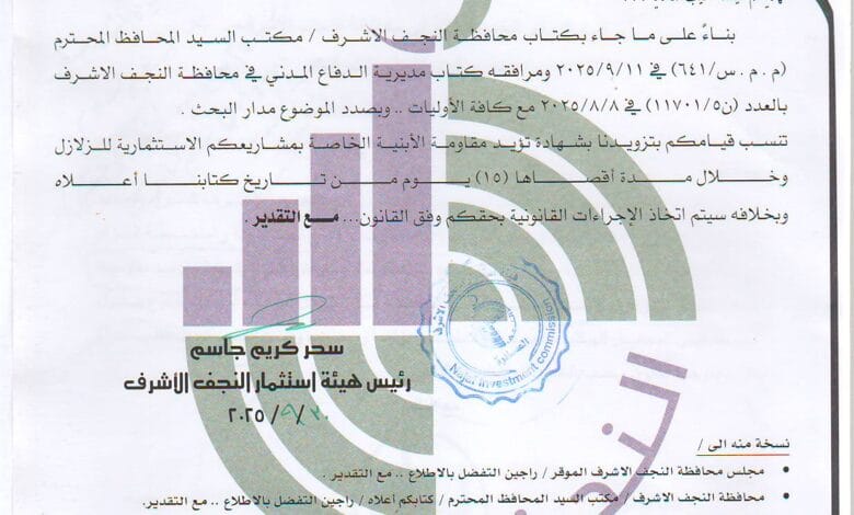 اعمام الدفاع المدني تزويدنا بشهادة تؤيد مقاومة الابنية في مشاريعكم الاستثمارية للزلازل