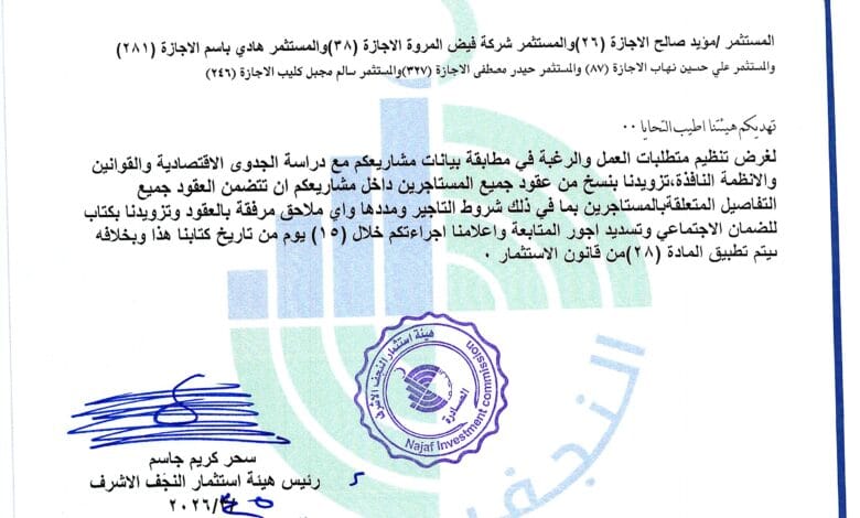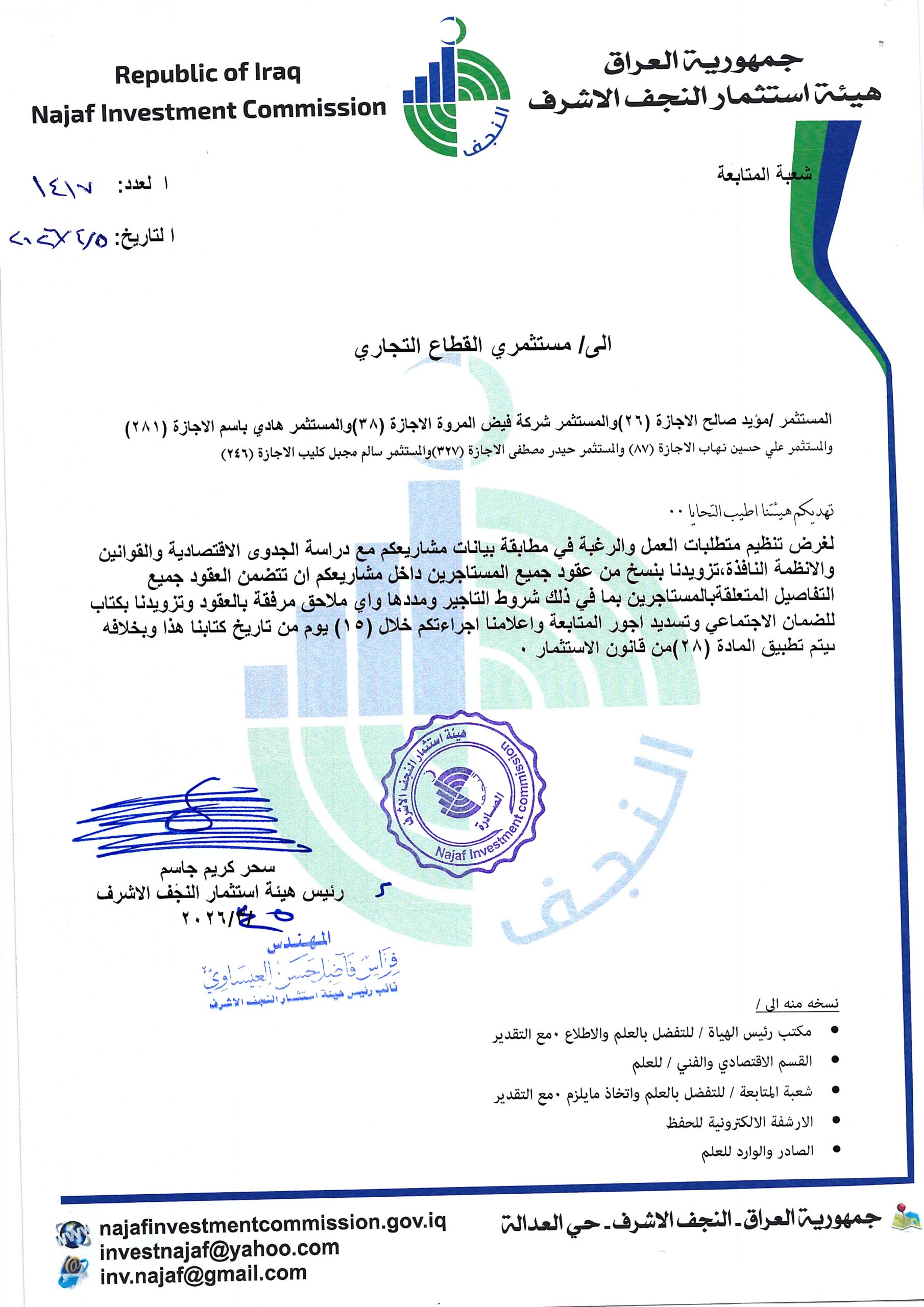 الى مستثمري القطاع التجاري (تزويدنا بنسخ من عقود الايجار )